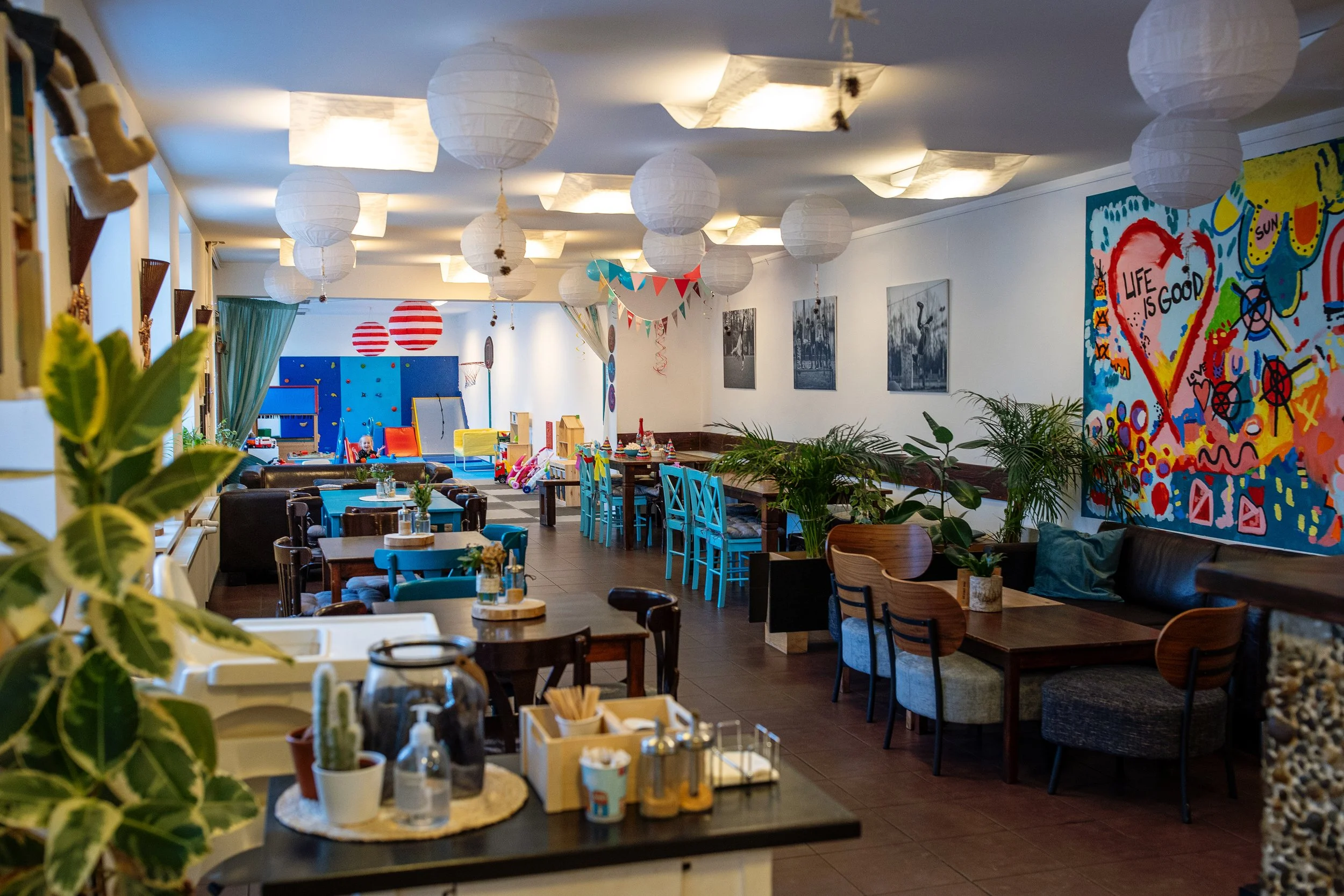 - A bright, welcoming café with both indoor and outdoor playgrounds, offering snacks and space for family events.